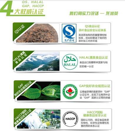 高認(rèn)證:龍潤(rùn)茶種植基地經(jīng)國(guó)家科技部、省科技廳、中國(guó)茶科所等部門及專家通過(guò)實(shí)地調(diào)查生態(tài)環(huán)境、栽培方式、加工條件,并將茶葉、土壤等抽樣帶回檢測(cè),而相繼通過(guò)“良好農(nóng)業(yè)規(guī)范”國(guó)家一級(jí)認(rèn)證、“出口植物源性食品原料種植基地檢驗(yàn)檢疫備案”認(rèn)證、“有機(jī)轉(zhuǎn)換產(chǎn)品”認(rèn)證等,龍潤(rùn)昌寧茶廠、云縣天龍生態(tài)茶廠、鳳慶龍潤(rùn)茶廠相繼通過(guò)QS、HACCP認(rèn)證,確保龍潤(rùn)茶生態(tài)健康的自然屬性。