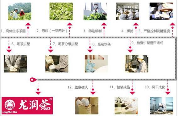 龍潤(rùn)茶建立了獨(dú)有的質(zhì)量體系,涵蓋了茶樹種植、鮮葉采收、車間衛(wèi)生、鮮葉攤涼、鮮葉殺青、鮮葉揉捻、茶葉渥悶、茶葉干燥、曬青毛茶存儲(chǔ)、運(yùn)輸、入倉(cāng)、篩分、揀剔、發(fā)酵、茶葉壓制、包裝、運(yùn)輸?shù)?6道嚴(yán)格質(zhì)量把關(guān),貫穿了整個(gè)龍潤(rùn)茶生產(chǎn)流程。并優(yōu)化和營(yíng)造良好的茶葉加工內(nèi)外環(huán)境,提升茶葉加工工藝,提高生產(chǎn)效率和茶葉品質(zhì),龍潤(rùn)茶年生產(chǎn)能力已達(dá)20000噸,切實(shí)推進(jìn)了龍潤(rùn)茶葉生產(chǎn)加工的清潔化、專業(yè)化、標(biāo)準(zhǔn)化和科學(xué)化,既保護(hù)了茶葉本身的有效成分,又將茶葉的優(yōu)質(zhì)元素完美體現(xiàn)。