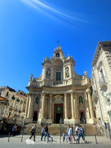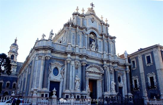 圣阿加塔大教堂(Piazza del Duomo e Cattedrale)是卡塔尼亞的主教堂,世界文化遺產(chǎn),島上巴洛克式建筑集大成之處,是意大利第三大教堂。始建于公元11世紀(jì),其后殿仍保留了最初的諾曼式結(jié)構(gòu),其余部分?jǐn)?shù)次毀于地震。現(xiàn)在的大教堂主要部分復(fù)建于18世紀(jì),是由埃特納火山黑色的火山巖和錫拉庫(kù)薩特產(chǎn)的白色石灰?guī)r修建而成。整棟建筑既大氣又精致,深得我心,每一處都值得細(xì)細(xì)欣賞、品鑒。