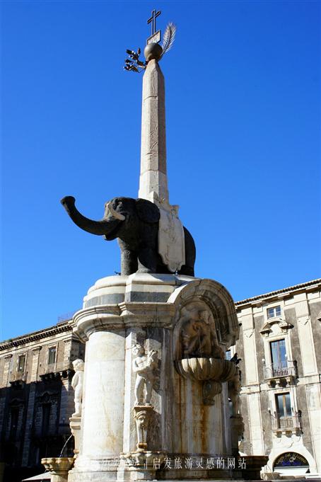 大象噴泉(Fontana dell’Elefant)是卡塔尼亞標(biāo)志,主體是一個(gè)黑色火山巖雕刻的大象,鼻子上揚(yáng),頂上是一個(gè)埃及的方尖石塔。據(jù)傳,大象是公元8世紀(jì)一位巫師Eli Odorus的寵物,而方尖石塔則擁有控制埃特納火山爆發(fā)的魔力。