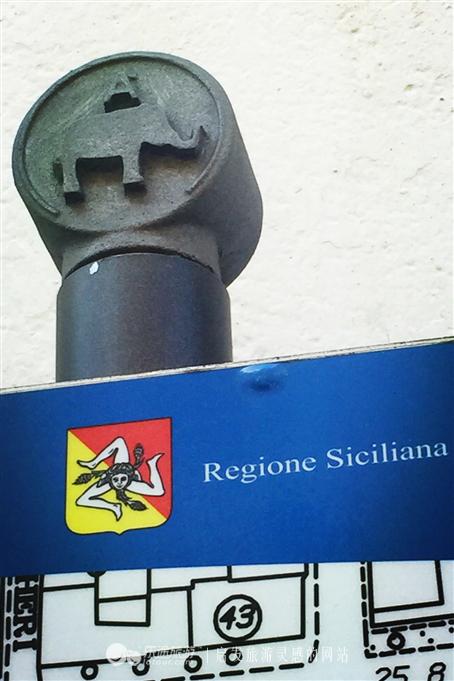 在西西里經(jīng)常看到這個(gè)圖案,是島徽,叫Trinacria。三條腿象征西西里的三個(gè)海角,麥穗或水果象征豐饒; 中間是蛇頭女妖美杜莎,傳說(shuō)美杜莎的頭讓珀?duì)栃匏垢钕聛?lái)后交給了雅典娜鑲在胸甲和盾牌上。所以后來(lái)這個(gè)美杜莎的頭像也象征著島嶼的守護(hù)神雅典娜。