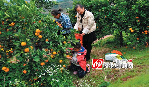 “媽媽,這個(gè)大橙子好甜呀,來(lái),我給你喂一個(gè)!”可愛的小姑娘周心怡今年才6 歲,她扎著兩個(gè)麻花辮,穿著大紅色的小棉襖,背簍里已經(jīng)放著四五個(gè)自己摘的冰糖橙。她手里正捧著爸爸剛剝好的冰糖橙,欣喜萬(wàn)分地小跑到媽媽身邊要她嘗嘗。媽媽劉欣蹲下來(lái),就著女兒的手,一口就咬掉了半個(gè)冰糖橙:“嗯,好甜好新鮮,剛下樹的就是不一樣。”