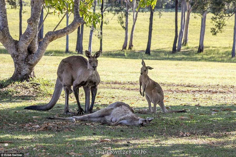 早上,Evan Switzer在澳大利亞昆士蘭弗雷澤島的原始林區(qū)拍到這一幕。“他似乎想要把她抱起來(lái),但她不能站立而摔到地上。他輕輕推她,站在她身邊......這是一個(gè)非常特殊的景象,他只是在悼念他的伴侶。”