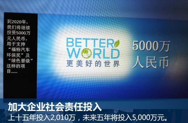 福特汽車不僅自身在產(chǎn)品設(shè)計(jì)和制造工藝環(huán)節(jié)上不斷尋求突破,企業(yè)社會(huì)責(zé)任板塊側(cè)重也非常注重環(huán)保。根據(jù)福特近期公布的企業(yè)社會(huì)責(zé)任新戰(zhàn)略,2020年之前福向‘福特汽車環(huán)保獎(jiǎng)’及‘綠色晉級(jí)’等項(xiàng)目投入5000萬(wàn)人民幣。