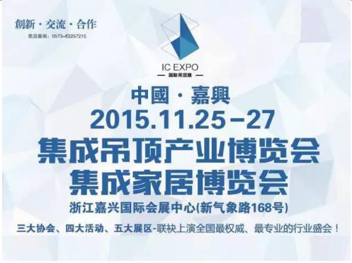 世界吊頂看中國,中國吊頂看嘉興。2015中國(嘉興)集成吊頂產(chǎn)業(yè)博覽會由國家一級協(xié)會中國建筑裝飾裝修材料協(xié)會、中國建筑裝飾協(xié)會、全國工商聯(lián)家具裝飾業(yè)商會三大協(xié)會聯(lián)合主辦,匯集國內(nèi)一流集成吊頂品牌,吸引了一大批高端設(shè)計(jì)師和家裝業(yè)內(nèi)企業(yè)及經(jīng)銷商,打造了一場全國最專業(yè)、最權(quán)威的行業(yè)盛會。
