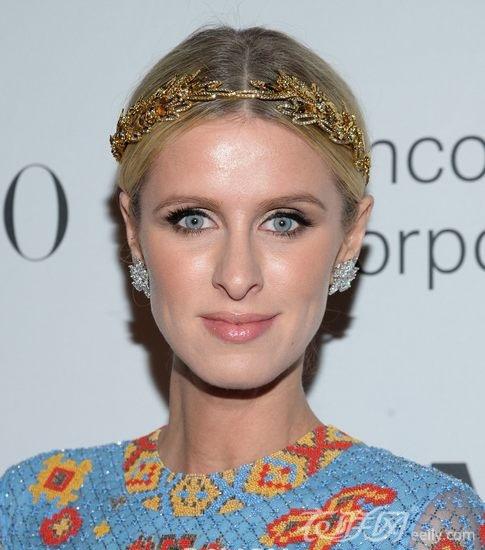 以中分發(fā)搭配金閃閃的珠寶發(fā)箍,充滿復(fù)古華麗感