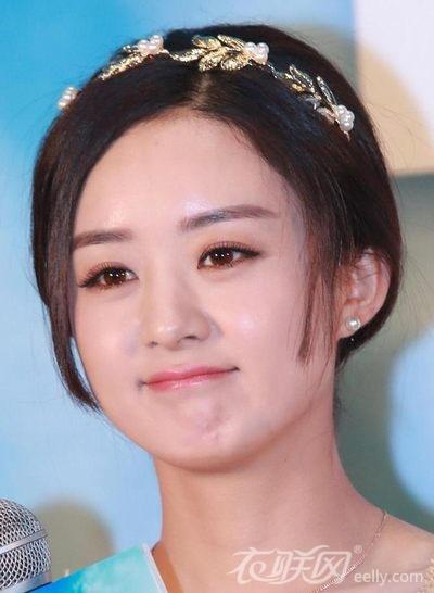 甜美風(fēng)格的花朵造型發(fā)箍與珍珠耳環(huán)呼應(yīng),正好襯托趙麗穎清純氣質(zhì)