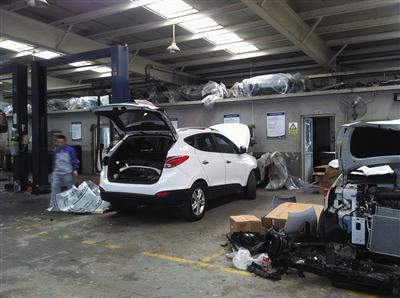 隨后,記者一行來到維修車間查看車輛,發(fā)現(xiàn)車間環(huán)境臟、亂、差。垃圾箱就在車間入門處,地面上放著機(jī)油和部分工具,維修工位旁就隨意堆放著車輛維修后的廢棄部件。負(fù)責(zé)給暗訪車輛進(jìn)行檢測(cè)的技師并未穿著工服,也未佩戴胸牌,經(jīng)詢問,該技師是該店售后總監(jiān)。在車主告知后備廂存在漏雨情況后,該技師便開始檢查后備廂情況,時(shí)間持續(xù)約2個(gè)小時(shí)后,該技師在專家及車主的幫助下,發(fā)現(xiàn)后備廂漏雨位置,且油箱蓋附近也有漏水情況。而要處理后備廂的漏雨情況,需將后車窗玻璃卸下再做維修,當(dāng)天無法完工。