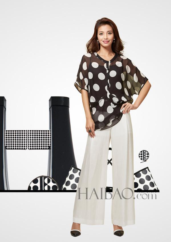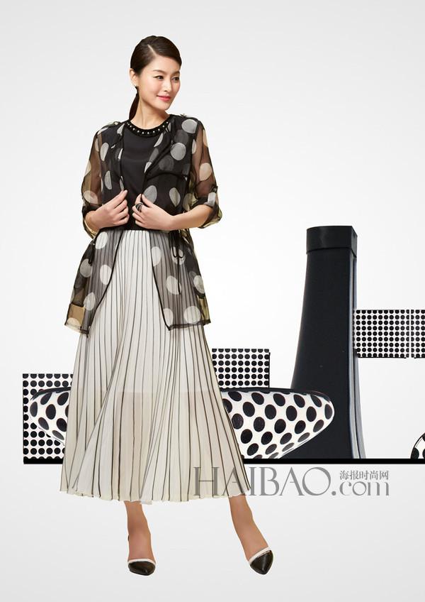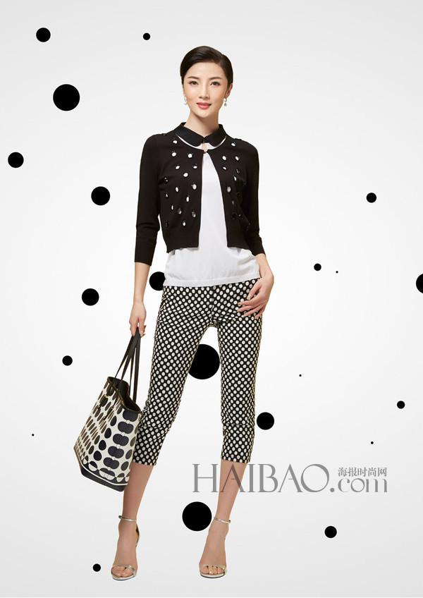 黑白波點加上經(jīng)典的哈倫褲、赫本式復古A擺裙,瀟灑、活潑,整身小波點圖案,給人帶來美妙的視覺感受,彰顯優(yōu)雅的女性魅力