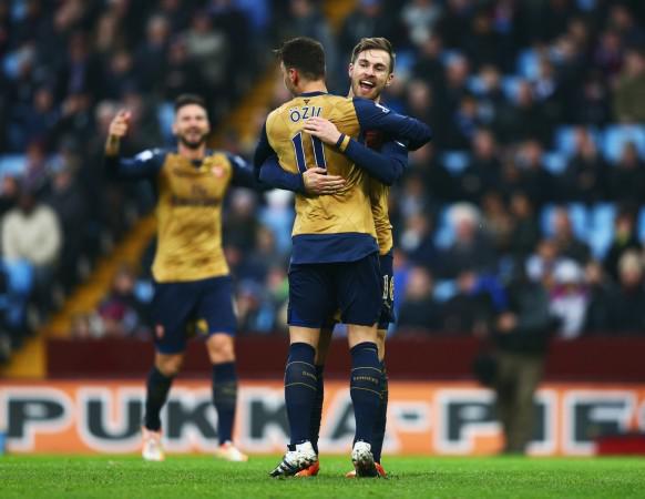 拉姆塞與厄齊爾慶祝進(jìn)球