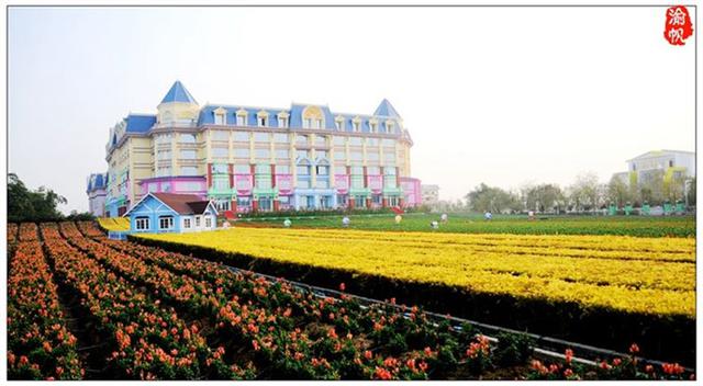 酒店不僅被鮮花環(huán)繞,其城堡的外觀造形亦很是夢幻。1月26日上午,我們從海珠海客站坐上前往萬頃沙的大巴,大約一個(gè)小時(shí)左右到達(dá),然后轉(zhuǎn)蕉門地鐵站到百萬葵園的23路公交車(2路、25路也可以),半個(gè)小時(shí)左右到達(dá)目的地,首先映入眼簾的便是花之戀酒店的主體建筑——黛斯堡。在歐式城堡的海洋藍(lán)的尖屋頂下,明亮黃色的墻體、綠色、粉色等繽紛的色彩裝飾著窗欞、門框,與酒店建筑外的萬畝花田遙相呼應(yīng),恍若置身于浪漫夢幻的安徒生童話世界。