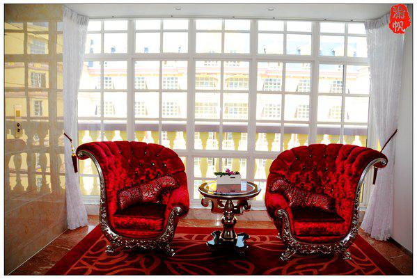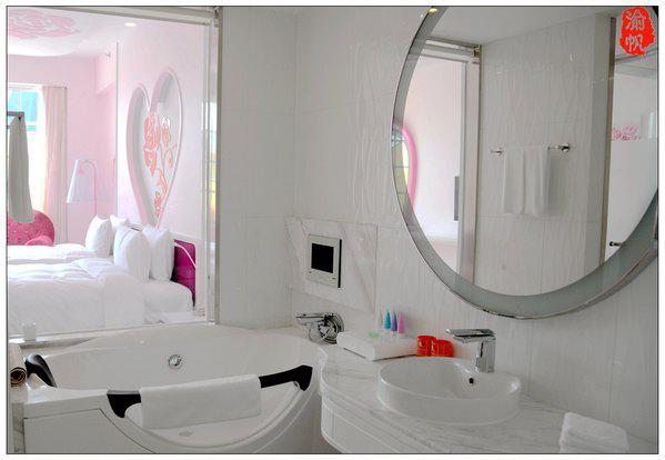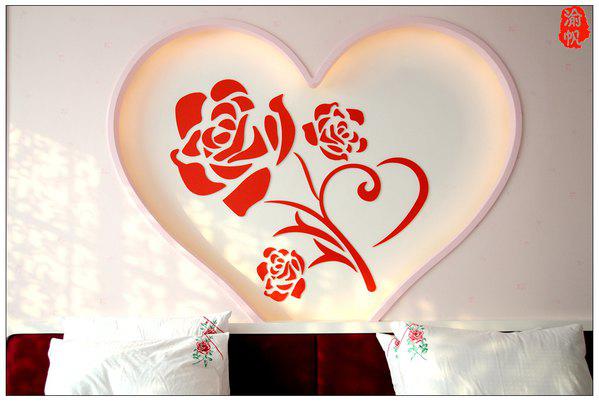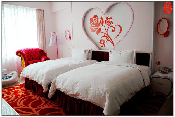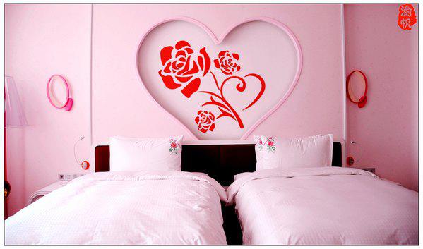 我們?nèi)胱〉氖欠奂t色的浪漫玫瑰花房,房間的墻上、地板、天花……到處都是浪漫的玫瑰元素,當(dāng)我用手機(jī)隨拍了一些圖片發(fā)到朋友圈時(shí),大家都表示驚嘆,很多朋友感嘆像婚房一般