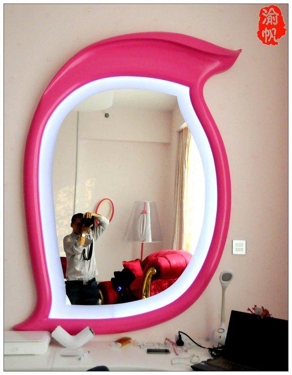 玫瑰花瓣形的美人鏡,上面有觸摸開關(guān),輕輕在鏡面上觸碰便可自如開關(guān)。