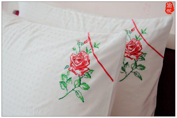 枕頭上繡有精美的玫瑰花