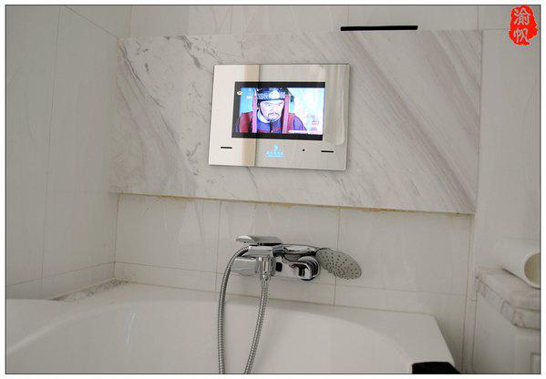 浴缸前面及馬桶前方都各有一個(gè)小型液晶電視,無論身在房間何處,都不會覺得枯燥。