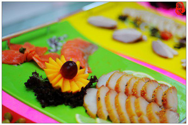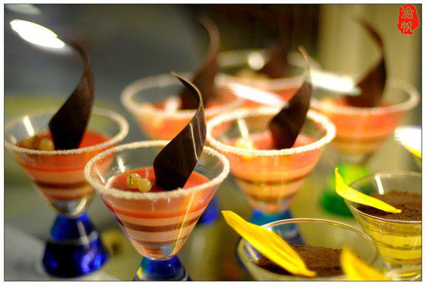 在花之戀酒店,不僅是視覺上的享受,味覺方面,亦可以滿足一個(gè)吃貨的各種需求,在紅、綠、黃三色交織、呈歡快時(shí)尚風(fēng)格的西餐廳內(nèi),無論是葵花雞豪會宴區(qū)、還是國際繽紛美食區(qū),或者南沙特色美食區(qū),你都可以品嘗到美味絕倫的酒店佳肴。色香俱全的中東燒烤、奢侈的法式香草焗蝸牛、經(jīng)典的日本壽司三文魚、滋味十足的陳年花雕浸雞子、霸道的龍利卷葵花雞柳、沸騰的西梅釀雞胸、高科技的3D打印食品、外酥內(nèi)柔的馬卡龍、香噴噴的葵花雞扒、粒粒香珍肝炒飯……等等美食,縱使是渝帆這樣的吃貨,亦有停不下來的尷尬。