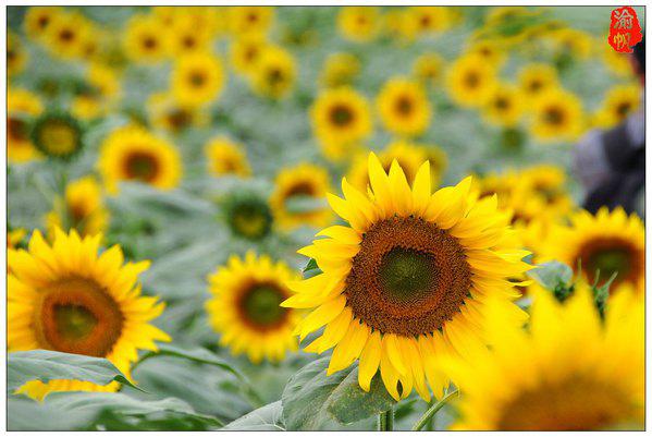 在向日葵基地,大片的葵花盛開