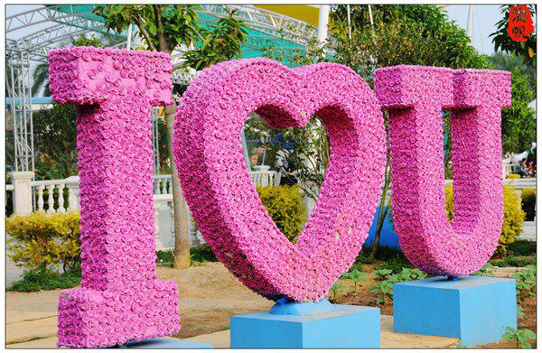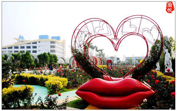 玫瑰園內(nèi)的愛情主題雕塑,拍照很的元素。