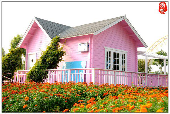 景區(qū)還有很多這樣色彩鮮艷的小木屋,被四周的鮮花環(huán)繞