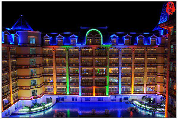 最值得推薦的,還是酒店特有的6D燈光秀,想想之前大家說的什么3D、4D都弱爆了,這里直接是6D燈光 晚上八點(diǎn),在夢幻城堡的外墻上,七彩花田間,通過聲光電的神奇結(jié)合,一幅幅美妙的畫面徐徐展開,一個(gè)個(gè)巧妙的故事精彩上演,我們聞著沁人花香,看著振憾燈光,很是感嘆,很是享受!!其實(shí)不僅是七彩花田一面,在任何角度欣賞花之戀酒店的黛斯堡都非常漂亮,鮮花環(huán)繞,張燈結(jié)彩,恍若仙境!