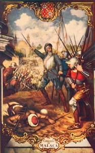圖為阿爾布克爾克帶領(lǐng)葡萄牙遠(yuǎn)征軍攻打馬六甲