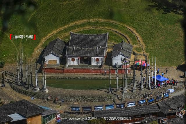 建于明朝弘治年間的殿堂式“張式家廟”德遠堂。雕龍畫鳳,裝飾典雅,宗祠前有半圓形池塘,塘邊分別豎立著23根高達10米的石龍旗。