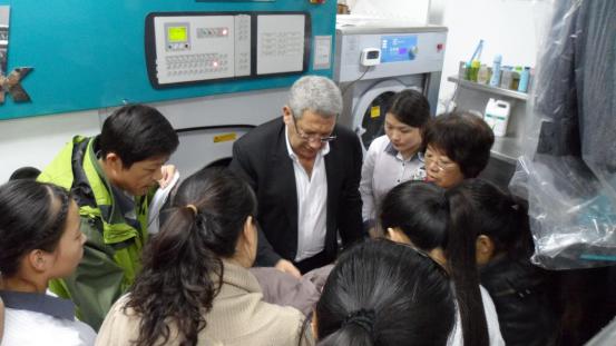 福奈特研究中心工作人及一線洗衣店的技工們,也利用短暫時(shí)間就洗衣店經(jīng)常遇到的洗衣難題、投訴案例和如何避免洗衣事故與Benhamou Maurice先生進(jìn)行了交流。