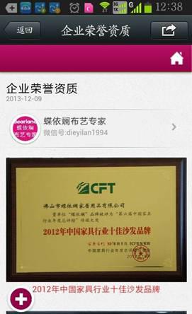 蝶依斕布藝專家走在行業(yè)創(chuàng)新前沿,在2014版官方網站更新升級的同時聘請專業(yè)的微網站策劃團隊,開發(fā)時下最流行微網站并于近日已正式上線。服務號微網站設置包括企業(yè)動態(tài)、合作加盟、產品中心、品牌文化、全國網點、企業(yè)榮譽、聯(lián)系我們等欄目,力求為有需求的客戶提供一個更好的服務平臺,將幸福家居產品通過移動客戶端帶給廣大消費者。