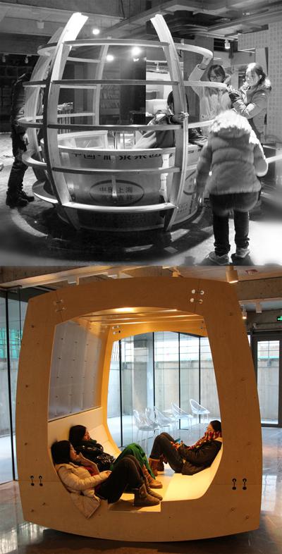 18位學(xué)生,分作三組,由建筑學(xué)院副教授Terrence Curry指導(dǎo),經(jīng)調(diào)研、設(shè)計(jì),歷時(shí)八周,在預(yù)算(每個(gè)方案5000元)之內(nèi)施工完成的三件作品,從不同的角度表達(dá)著對(duì)設(shè)計(jì)母體的思考: