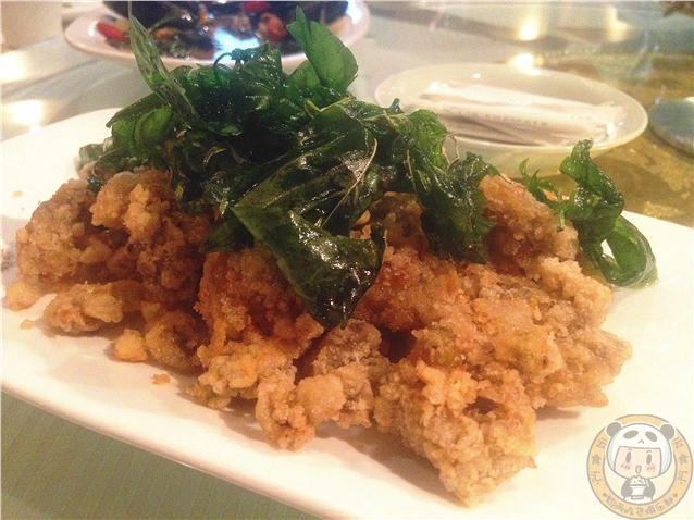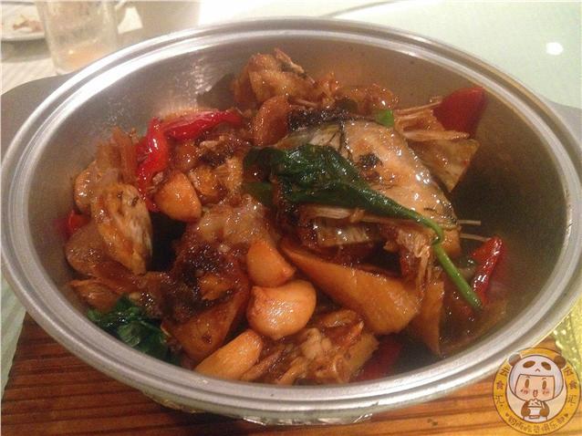 三杯鮮魚頭:這道菜是魚頭裹面,把魚肉炸酥,澆上料汁,最后淋上黑麻油制作而成,里面加入了香草九層塔。魚肉吃到嘴里特別香,因?yàn)橛辛撕诼橛偷暮嫱校褪歉杏X吃多了會(huì)有些膩!