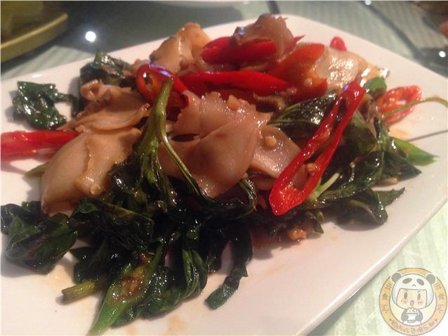 九層塔炒螺肉:這道菜做的挺漂亮,螺肉切的很薄,很有嚼勁,味道挺特別的。