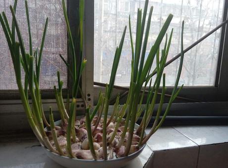 有人養(yǎng)貓,有人養(yǎng)狗,有人養(yǎng)鸚鵡。我十分羨慕,無奈人窮屋小,思來想去,只好養(yǎng)了一盤蒜苗。不用伺候,澆點水就青翠可愛。開心時,炒蛋。不開心時,煮面。