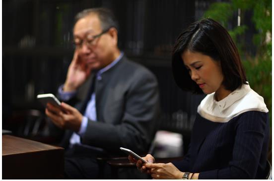 (參觀團(tuán)一行現(xiàn)場關(guān)注EVA時(shí)尚集團(tuán)官方微信,邊用手機(jī)查看電子畫冊企業(yè)介紹,邊聽講解。對于EVA時(shí)尚的創(chuàng)新和積極謀變紛紛點(diǎn)贊。)