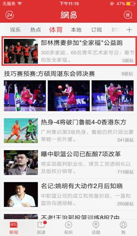 活動當天,網(wǎng)易客戶端體育頻道率先報道