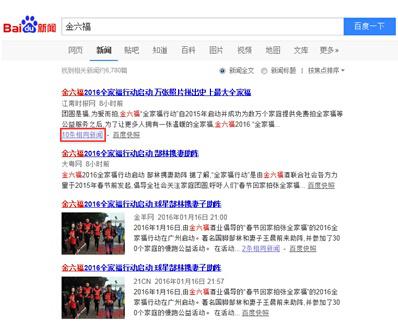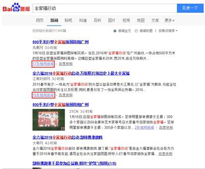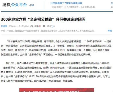 1月16日,金六福酒2016“全家福行動”大型公益活動在廣州溫情啟動。活動現(xiàn)場,萬張全家福拼接而成的“史上最大全家福拼圖”震撼亮相,郜林攜妻子王晨與300幸福家庭、1000余人參加“全家福公益跑“引發(fā)熱議。除了活動現(xiàn)場的溫暖、激情與震撼,活動之后的媒體報道同樣振奮人心。