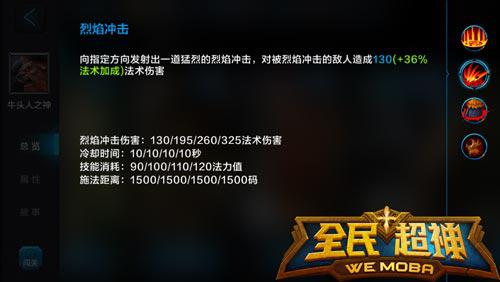烈焰沖擊:向指定方向發(fā)射出一道猛烈的烈焰沖擊傷害位于一條直線上的敵人