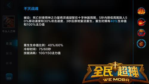 重生:(被動(dòng)技能)牛頭人之神倒下后,他飛散的冥魂會(huì)重組,使他復(fù)活。復(fù)活過(guò)程中附近的敵人會(huì)被減速