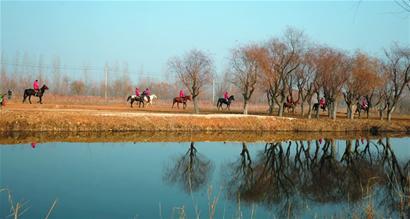 萊西自古以來不乏駿馬嘶鳴,現(xiàn)有古馬場遺址可考,有古籍可依。昨日上午,中國馬業(yè)協(xié)會的十二匹中國馬在萊西姜山揚(yáng)蹄踏塵,五公里賽道上比拼耐力,這也宣告著首個(gè)中國濕地耐力馬訓(xùn)練基地在此落戶,從此,姜山濕地林間道上駿馬馳騁將成為常態(tài)。