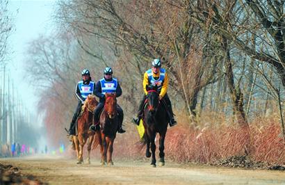 賽事組委會工作人員告訴記者,此次測試賽設(shè)置的賽道長度為往返五公里,選手到達(dá)指定位置后騎馬原路返回,六組賽馬總比賽時(shí)間大約為一小時(shí)。 30分鐘后,第一組選手再次出現(xiàn)在視野中,很快便從記者身旁一掠而過,只剩下一陣輕快的馬蹄聲。 45分鐘后,六組選手全部抵達(dá)終點(diǎn)。