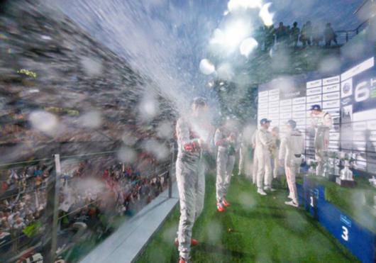 香檳(CHAMPAGNE)和冠軍(CHAMPION)發(fā)音十分接近,因此在當(dāng)天的慶祝儀式上,波馬利香檳化身“另類獎(jiǎng)杯”被賽車手們捧上領(lǐng)獎(jiǎng)臺。隨后,賽車手們用噴灑香檳來表達(dá)勝利的喜悅。沒有了觀態(tài)、聞香、細(xì)嘗的品鑒過程,此時(shí)的波馬利給予的是另外一種神奇刺激的愉悅感。