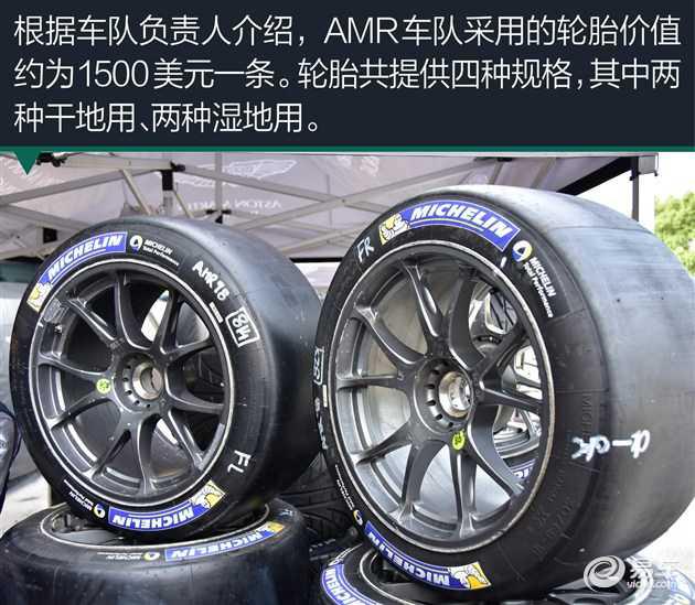 根據(jù)車隊(duì)負(fù)責(zé)人介紹,AMR車隊(duì)采用的輪胎價(jià)值約為1500美元一條。輪胎共提供四種規(guī)格,其中兩種干地用、兩種濕地用,一臺(tái)車一場(chǎng)比賽可用10套輪胎,所以AMR車隊(duì)參加全年比賽所使用的輪胎就價(jià)值400萬美元。