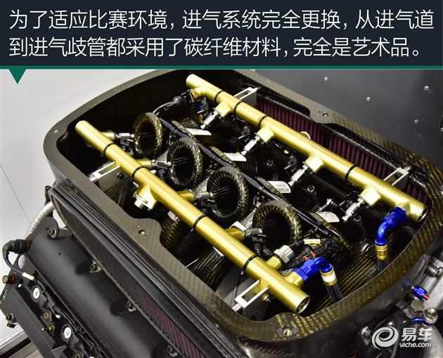 AMR車隊(duì)采用的V8發(fā)動(dòng)機(jī)來源于量產(chǎn)的阿斯頓馬丁Vantage,為了適應(yīng)比賽環(huán)境,進(jìn)氣系統(tǒng)完全更換,從進(jìn)氣道到進(jìn)氣歧管都采用了碳纖維材料,完全是藝術(shù)品。