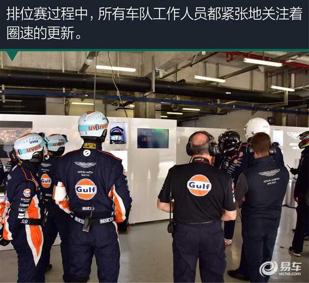 很快進(jìn)行到排位賽,一臺(tái)賽車將由兩位車手參加計(jì)時(shí)圈,最終成績(jī)將取兩人成績(jī)的平均值。排位賽過程中,所有車隊(duì)工作人員都關(guān)注著圈速的更新,最終,AMR車隊(duì)的兩臺(tái)賽車包攬了GTE Am組別的頭兩名。