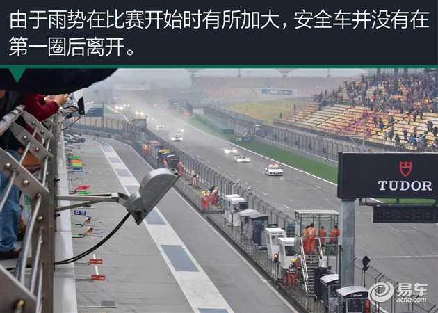 由于是致敬,車手并不需要跑入賽車,賽車也都處于點(diǎn)火狀態(tài),并且出發(fā)后是在安全車的帶領(lǐng)下進(jìn)入暖胎圈。由于雨勢(shì)在比賽開始時(shí)有所加大,安全車并沒有在第一圈后離開,當(dāng)安全車駛回維修區(qū)后,被壓制的賽車才全速?zèng)_刺,真正了角逐開始了!