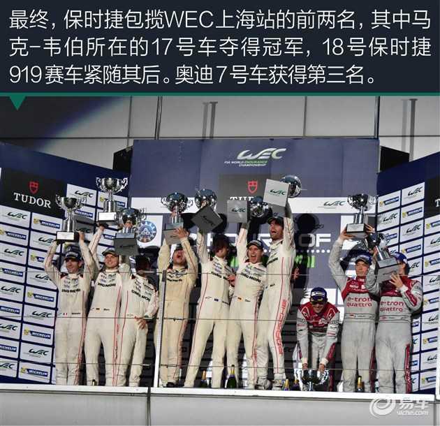 經(jīng)過六個(gè)小時(shí)的激烈纏斗,保時(shí)捷包攬WEC上海站的前兩名,其中馬克-韋伯所在的17號(hào)車奪得冠軍,18號(hào)保時(shí)捷919賽車緊隨其后。奧迪7號(hào)車獲得第三名。
