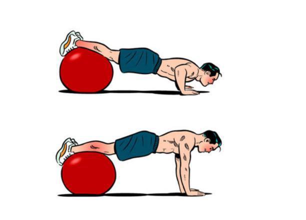 好,現在像圖上一樣,做15次,具體動作如下:雙手撐地,面朝下,身體靠在訓練球上。然后移動你的雙手,讓訓練球在你的腿部下方滾動起來,直到到達小腿肉的位置。你的雙手必須垂于肩膀下方。保持身體伸直,收緊腹部,彎曲手肘,盡量低于你的胸部,靠近地面,直到手肘與地面處于平行狀態(tài)時,停止運動。