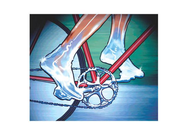 提高你的踏板頻率,增強腳踏推力,這些是通過調整和固定腳踝位置來實現的。最近的研究表明,運動員在踩踏的時候,如果他們的足部總是呈現自然上翻的現象,那么他們的踏板效率將降低3%。更糟糕的是他們在提供腳踏推力的時候,小腿肚需要額外付出37%的能量。所以保持你的足部伸直,固定腳踝將為踩踏效率的提高提供更堅實的平臺,從而減少肌肉疲憊感,高效輸出功率。