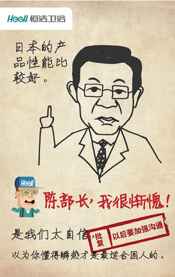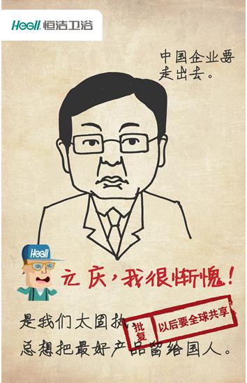 3月14日,五則以近來火極一時的“買只馬桶蓋事件”焦點人物漫畫像為主視覺的“我很慚愧”文案海報出現(xiàn)在恒潔衛(wèi)浴官方微信上,引發(fā)從行業(yè)到消費者的共鳴。有網(wǎng)民評論,這是“致敬”加多寶“對不起”系列啊,也有消費者大發(fā)感慨,素來埋頭做事的恒潔衛(wèi)浴也漂亮玩了一把微營銷,令人刮目相看!在眾多力挺“中國制造”的粉絲推波助瀾下,“我很慚愧”迅速成為中國首屆智能衛(wèi)浴論壇時期的熱點。