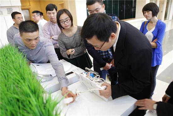 謝偉藩董事長生動描述“超旋風(fēng)”設(shè)計(jì)獨(dú)特的倒三角導(dǎo)水圈,他們都是科技研究的“癡迷者”。