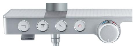 好的產(chǎn)品設(shè)計(jì)可以和用戶對話,而最高的境界,莫過于看到產(chǎn)品便能知曉它的一切。雨沐系列產(chǎn)品將“以人為本”的設(shè)計(jì)理念發(fā)揮到極致,巧妙地將花灑出水控制功能融合在大平面置物平臺上,不同功能的按鍵一目了然,讓用戶以最簡便的方式進(jìn)行自由切換選擇,調(diào)溫更加精準(zhǔn)至±0.5℃水溫,恒溫防燙,完美解決了普通花灑功能選擇方面不易識別、易誤操作及安全等問題。